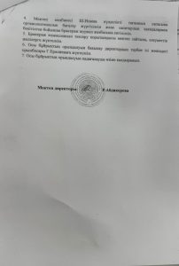 Бракераж комиссия мүшелері тамақтандыру сапасын бақылауға мерзімдік тексеру жүргізді. Өнімдердің сақталуы , тамақтардың мерзімдері, сертификаттары,асхана тазалығы, тексерілді. Тексеру барысында асхана жұмысы жан-жақты қаралып,талапқа сай екені анықталды.